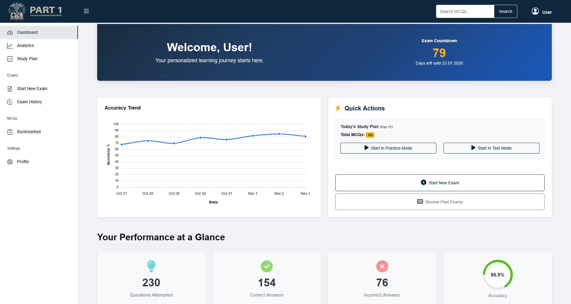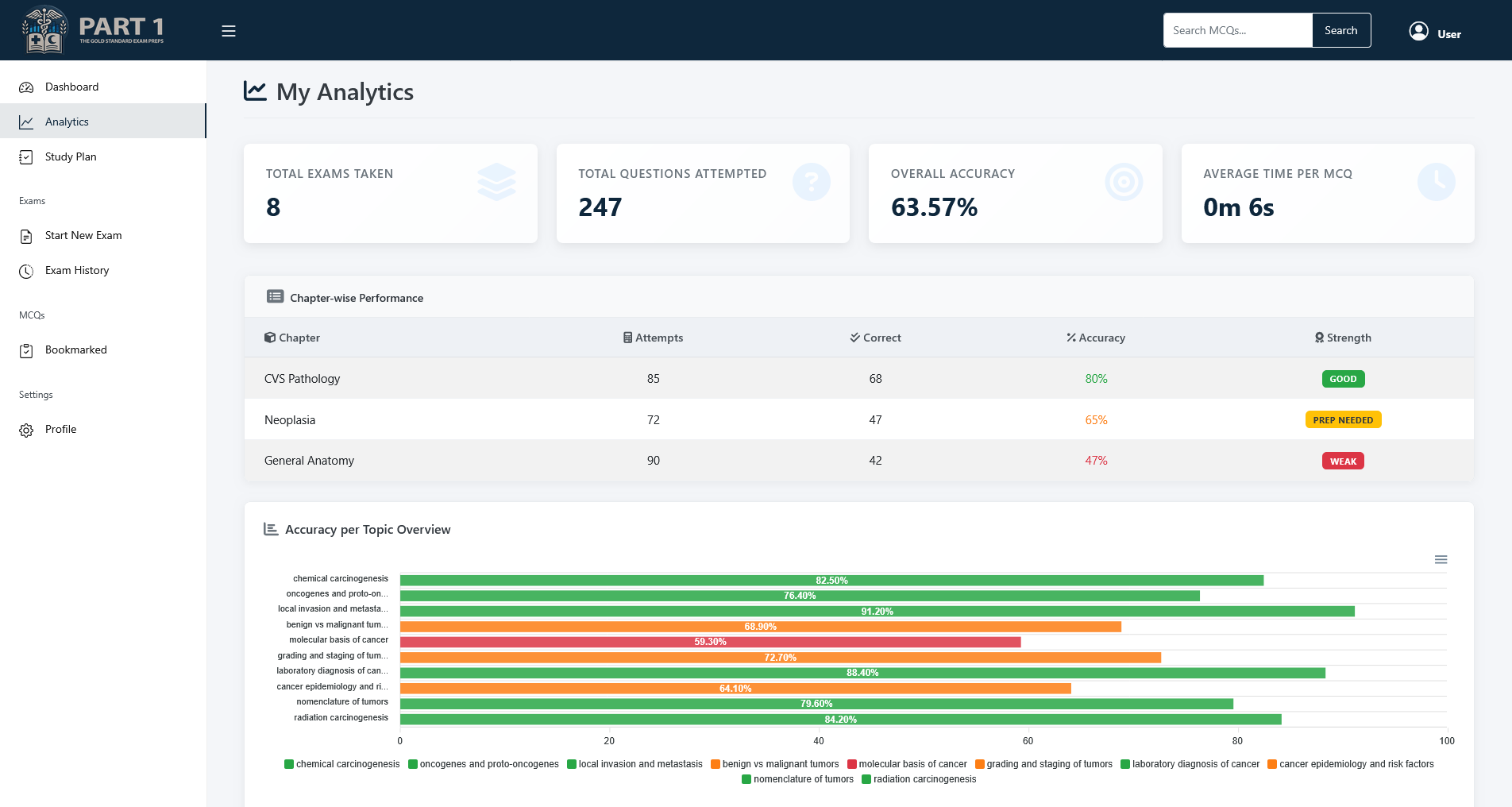 "The analytics dashboard is a game-changer! I finally understood where I was spending too much time, specifically on tricky Anatomy MCQs for FCPS Part 1. Being able to review detailed FCPS Part 1 MCQs with answers immediately helped me see which topics needed more attention. My scores improved dramatically."